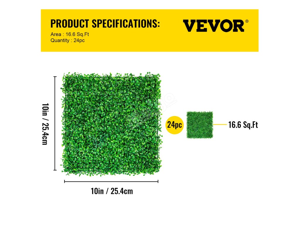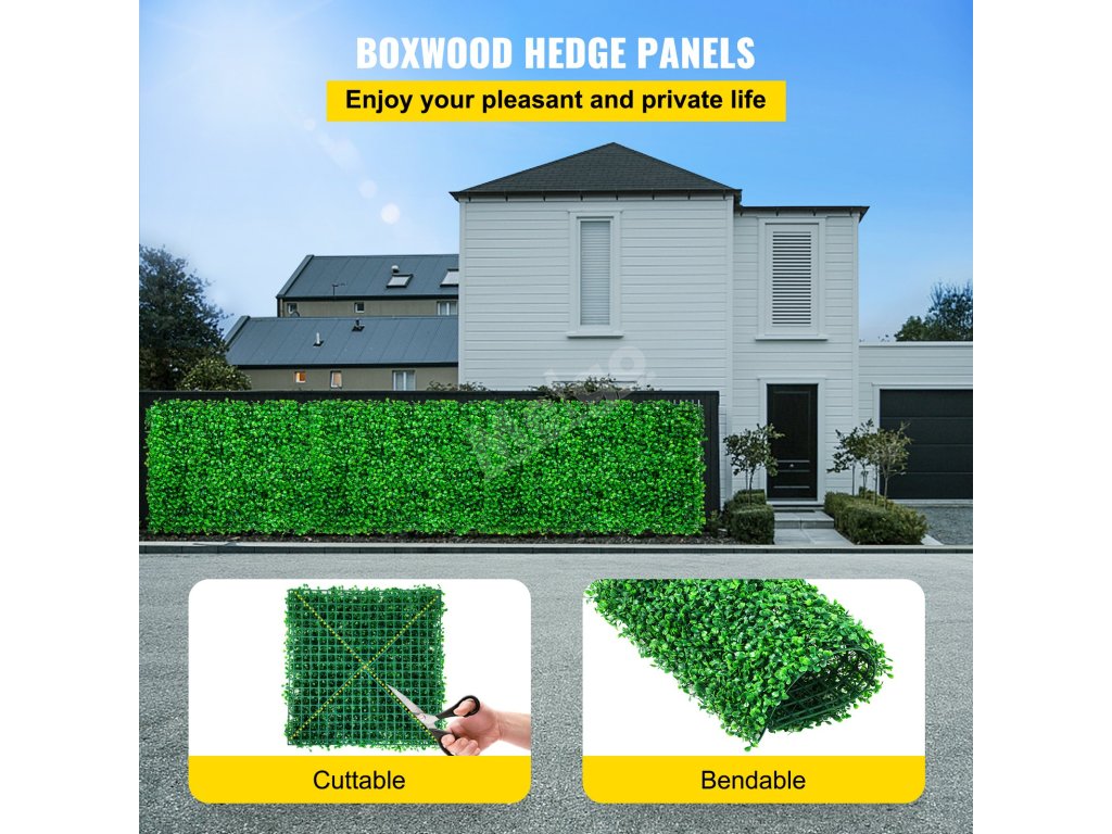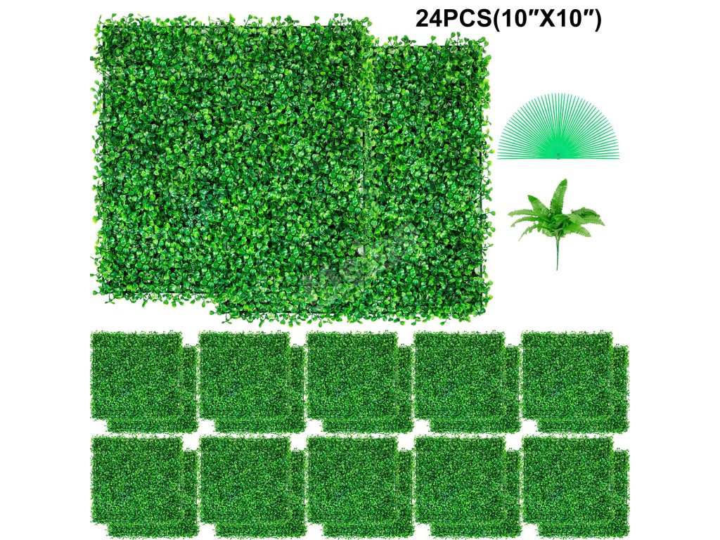 Umělý panel z buxusu 24 ks 10"×10" 4 cm zelený na dekor a plot