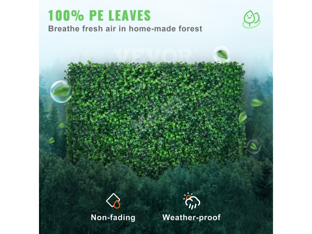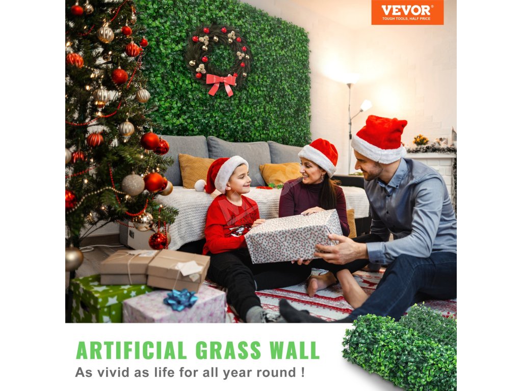 Vyrobte si DIY dekorace v interiéru i exteriéru s umělými panely ze zimostrázu VEVOR. Získáte tak nekonečně realistické travnaté stěny, takže si při každé příležitosti užijete jedinečnou bujnost a krásu. Naše travní stěna z PE je bez zápachu, odolná a má vysoce realistický estetický vzhled. Tak na co ještě čekáte? Nyní se připravte na radost ze zeleně!