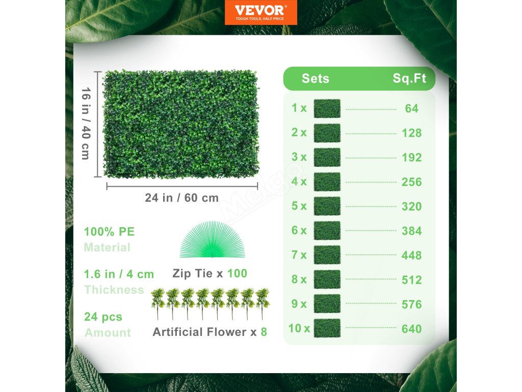 Velikost: 24'' x 16''. Náš umělý živý plot je vyroben ze 100% proekologického polyethylenu, který zajišťuje dlouhou životnost bez vyblednutí.