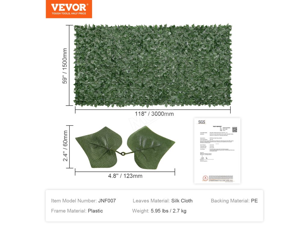 Umělý plot z břečťanu 1.5×3m, síťový podklad, zpevněné spoje