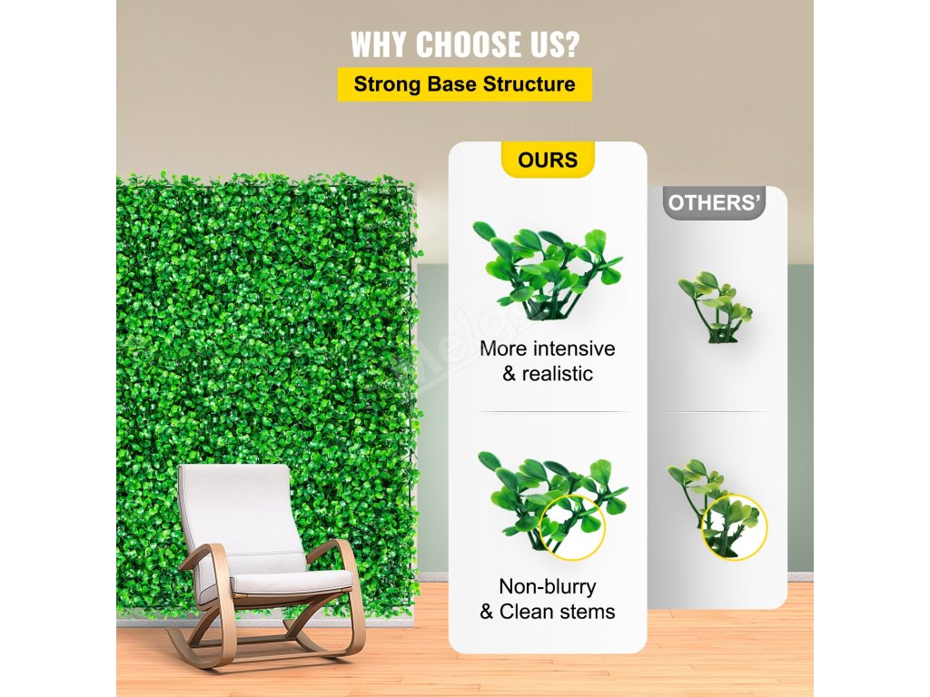 Živý plot ze zimostrázu má 324 vysokých mříží a je hustší. Naše stonky listů jsou čisté, bez plastických skvrn, které vypadají realističtěji.