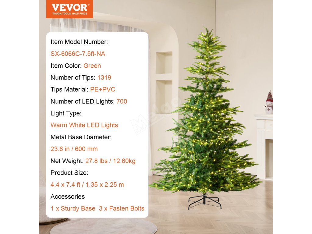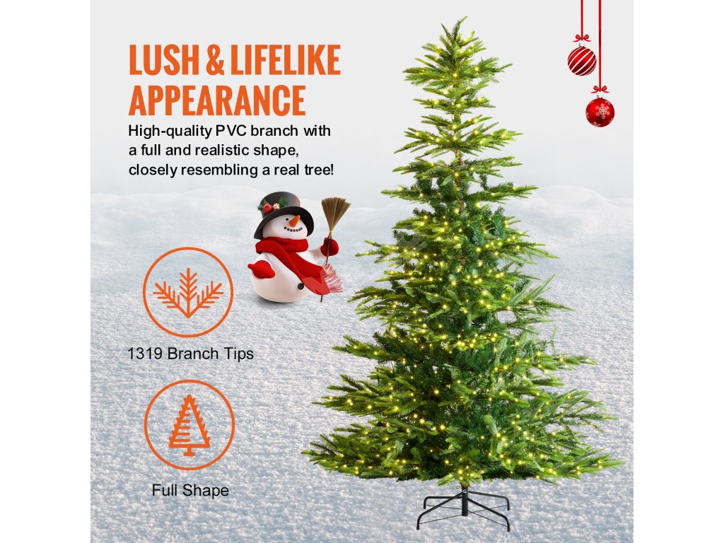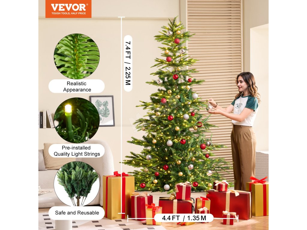 Nechajte predsvietené vianočné stromčeky VEVOR, aby sa stali stredobodom vašich sviatočných osláv a naplnili domov teplom, radosťou a duchom sezóny. 1319 koncov vetvičiek sa postará o svieži a realistický vzhľad a 700 teplých bielych LED svetielok vytvorí očarujúcu atmosféru, ktorú si budete vy a vaši blízki vážiť.