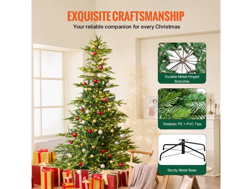 Zažite kúzlo tohto ročného obdobia s naším 7,5ft predsvieteným umelým vianočným stromčekom, ktorý sa môže pochváliť nadýchaným dizajnom vetiev a 1319 končekmi. Jeho bujné a plné konáre vytvárajú prirodzený vzhľad, ktorý váš vianočný stromček oživí.