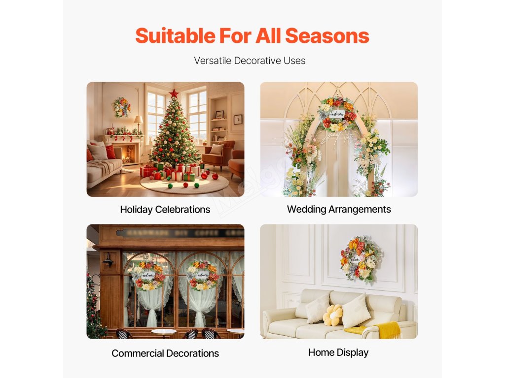 Tento umelý veniec s vonkajším priemerom približne 24 palcov je ideálny na výzdobu stredne veľkých obývacích izieb, jedální, konferenčných miestností, chodieb a iných domácich priestorov a dodá vášmu domovu nádych prirodzenej elegancie.