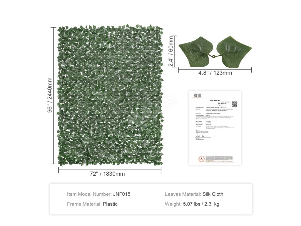 Umělý živý plot 2440×1830 mm, břečťanový panel se zpevněnými spoji