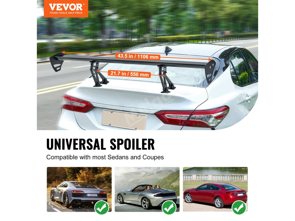 Univerzální zadní spoiler gt styl, nastavitelný 43.3"/110 cm