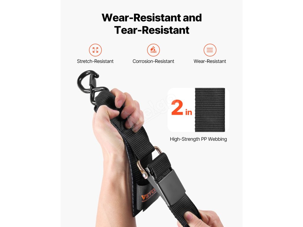 Tento ráčnový popruh má pevnost v tahu 1 500 liber a nosnost 500 liber. Je vyroben z odolného materiálu PP, odolný proti korozi, snadno se používá díky rychloupínací sponě a poskytuje bezpečné upevnění pomocí S-háčků a suchého zipu pro pohodlné skladování.