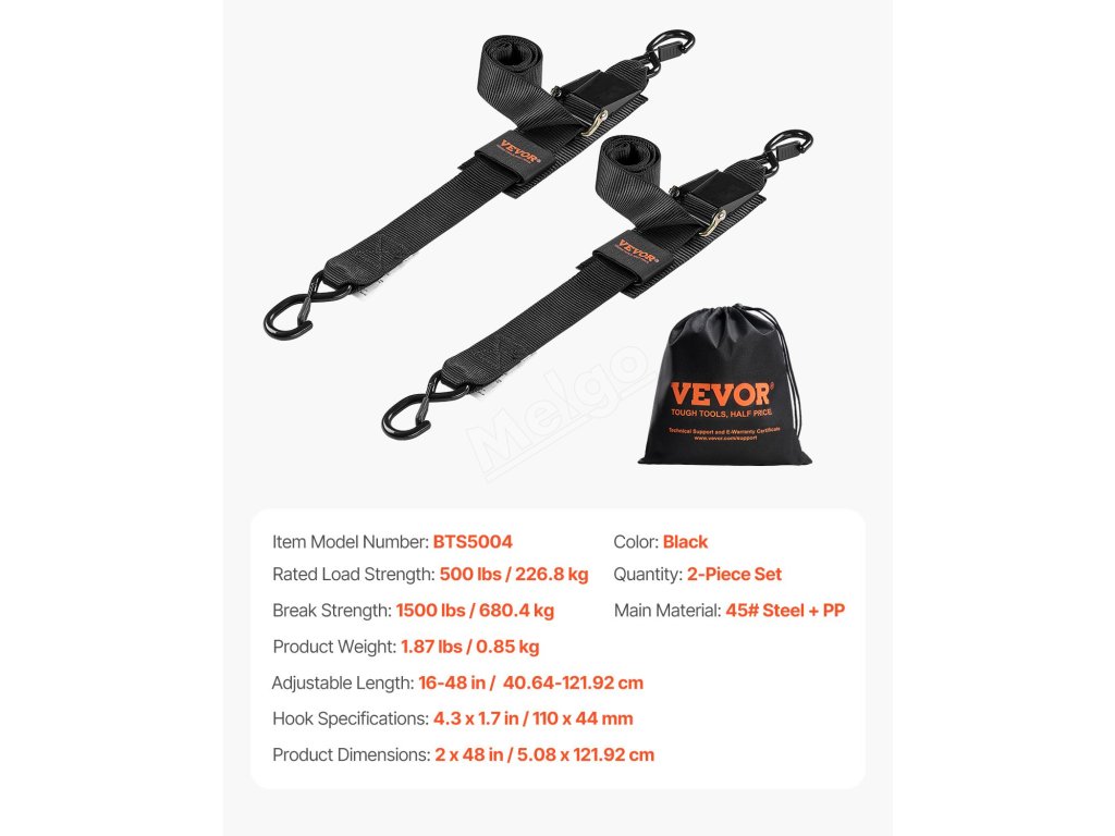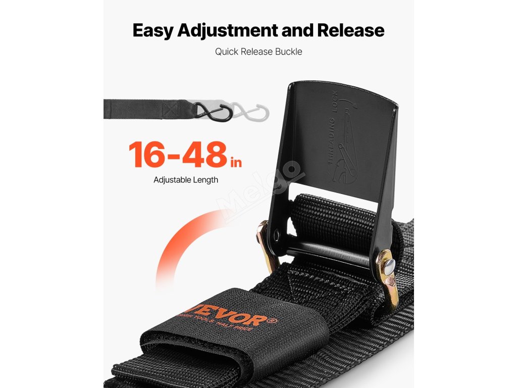 Tento ráčnový popruh má pevnost v tahu 1 500 liber a nosnost 500 liber. Je vyroben z odolného materiálu PP, odolný proti korozi, snadno se používá díky rychloupínací sponě a poskytuje bezpečné upevnění pomocí S-háčků a suchého zipu pro pohodlné skladování.