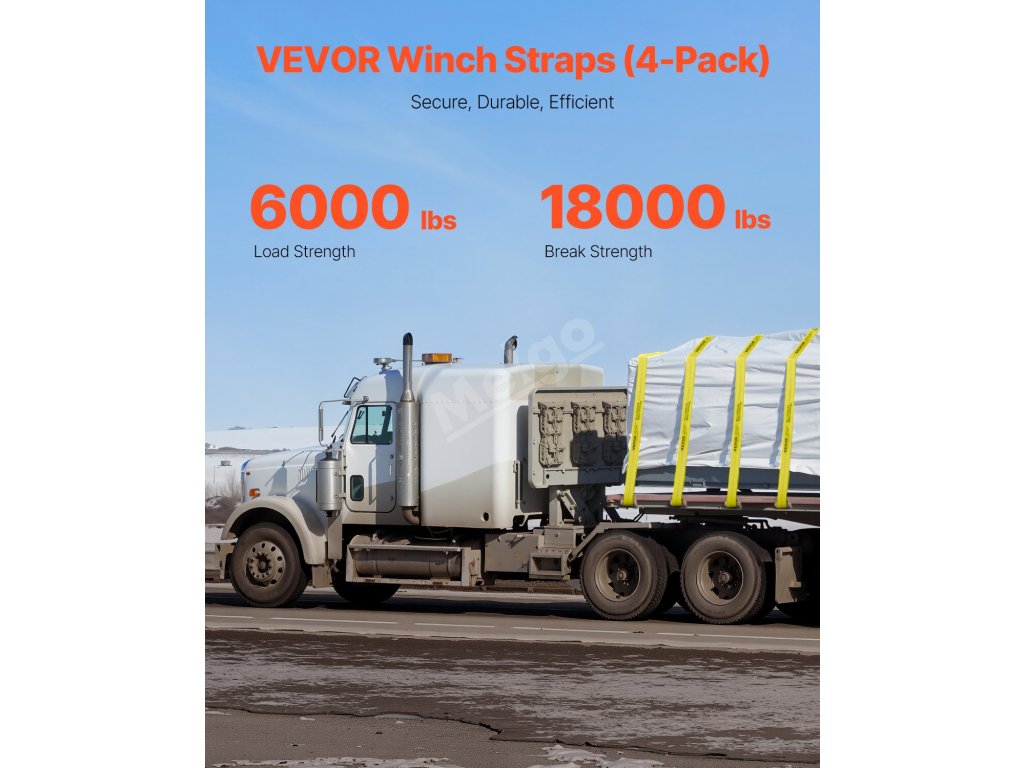 Díky pozoruhodné nosnosti 6 000 liber a silné pevnosti v tahu 18 000 liber jsou naše navijákové popruhy vhodné pro úkoly, jako je tahání těžkých nákladů, vlečení a dokonce i nečekané odstraňování stromů.