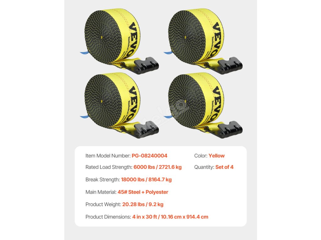 Upínací popruhy 4"×30' 6000 lbs nosnost 18000 lbs, 4 ks žluté