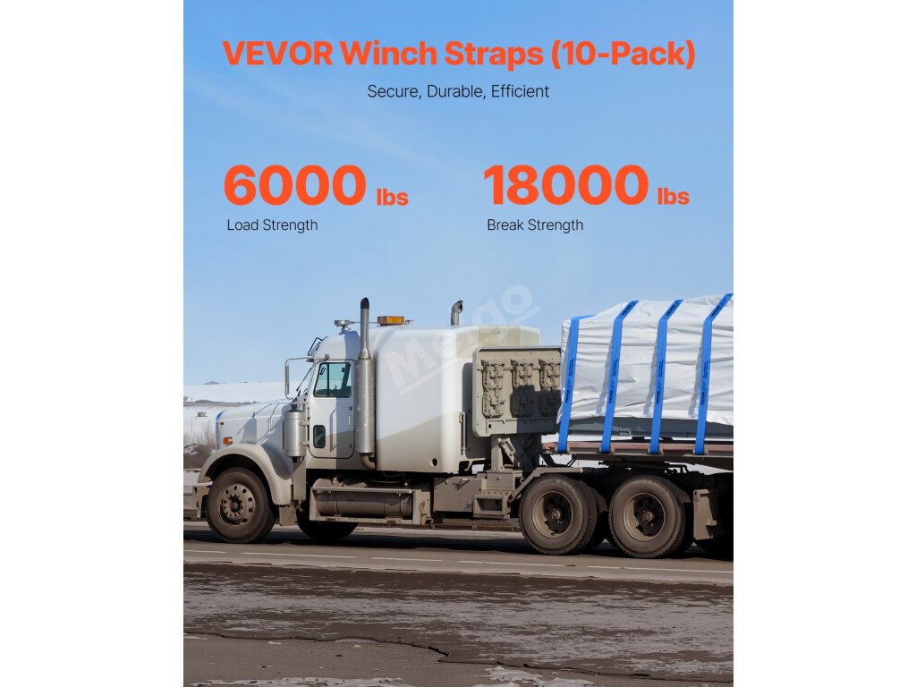 Díky pozoruhodné nosnosti 6 000 liber a silné pevnosti v tahu 18 000 liber jsou naše navijákové popruhy vhodné pro úkoly, jako je tahání těžkých nákladů, vlečení a dokonce i nečekané odstraňování stromů.