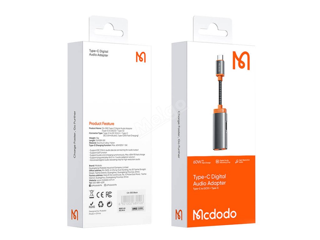 Adaptér Mcdodo je vybavený čipom HiFi, ktorý poskytuje krištáľovo čistý, bohato detailný zvuk bez skreslenia. Navyše podporuje rýchle nabíjanie PD 60 W, takže energiu Huawei Mate 40 Pro obnovíte približne za 1,6 hodiny. Teraz môžete počúvať hudbu, telefonovať alebo hrať hry a zároveň nabíjať svoje zariadenie.