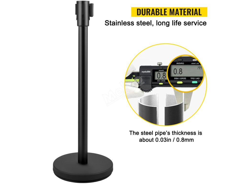 Stojan pro ovládání davu je vyroben z nerezové oceli, která je odolná proti vlhkosti, korozi a vysokým teplotám. Tloušťka ocelové trubky je přibližně 0,03 palce/0,8 mm. Díky tomu se snadno čistí a udržuje.
