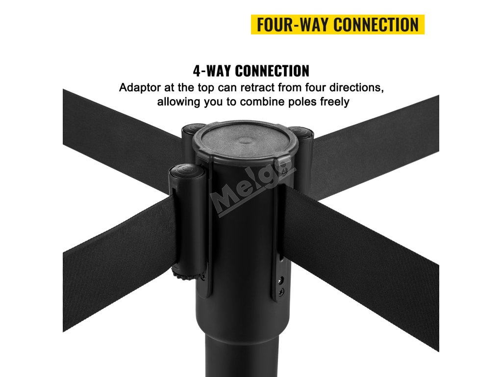 Čtyřcestný adaptér v horní části vzpěry umožňuje připojení pásu v libovolném směru. Aretační mechanismus na každé vzpěře může pás uzamknout na určité délce. Uživatelé mohou s pásem pracovat plynule a rychle ovládat skříňku pomocí adaptéru (dodáváme další adaptér).
