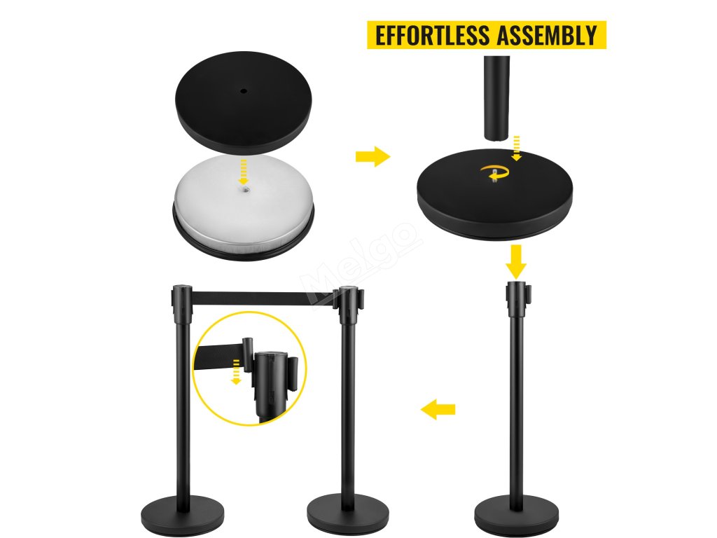 Základna naší bariéry pro kontrolu davu je pokryta nerezovou ocelí a vyplněna odolným betonem. Je tedy neklouzavá a odolná proti poškrábání, obtížně se pohybuje a převrací. Takto vyztužená konstrukce zvyšuje tvrdost sloupku, který při náhodném silném zmáčknutí kopne.