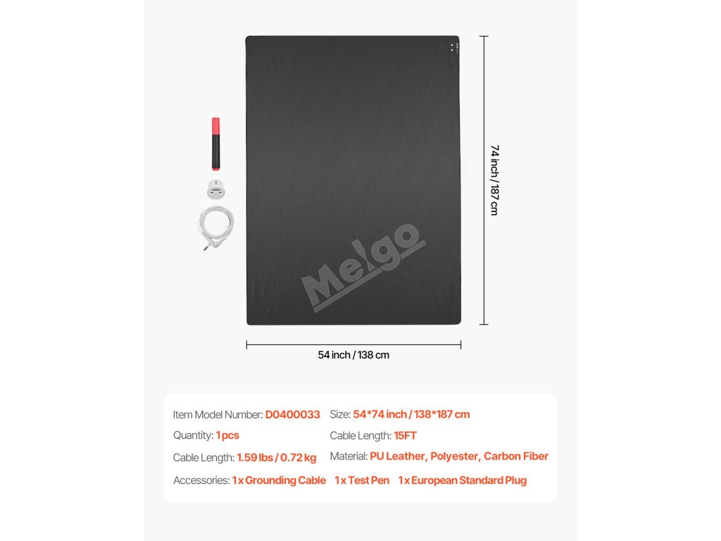 Uzemňovací podložka 73×54 in, pu kůže, protiskluzová, s 15 feet kabelem