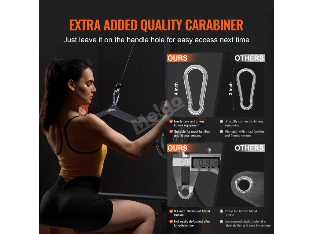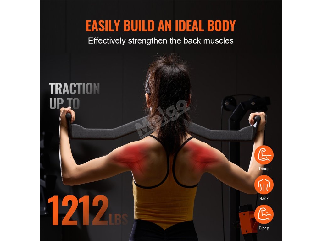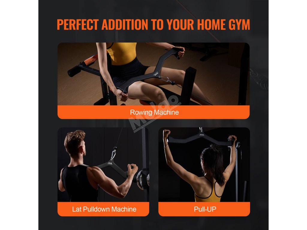 Náš nástavec na lano je navržen tak, aby účinně působil na zádové svaly, tricepsy a bicepsy, a podporuje tažnou sílu až 1212 liber/550 kg.