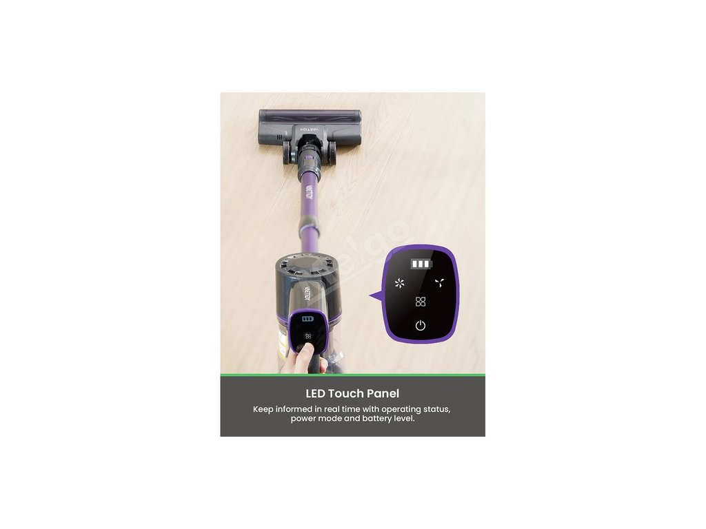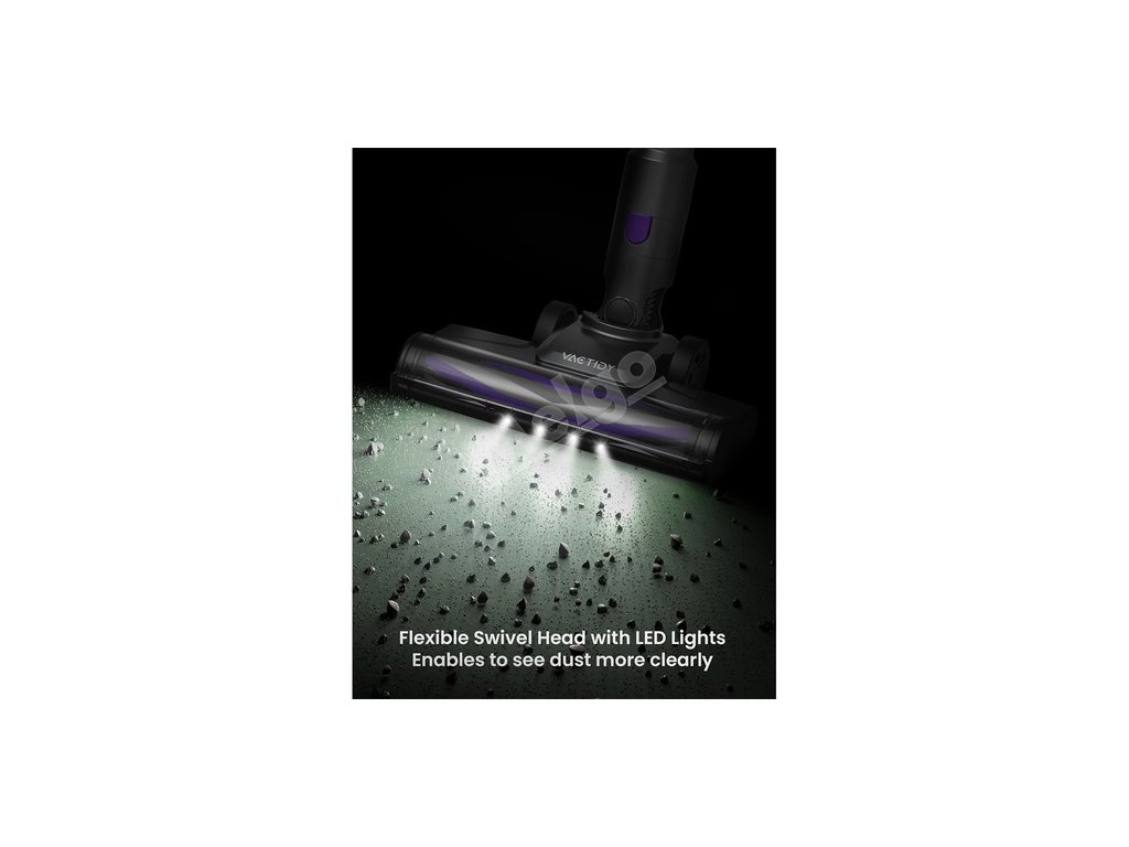 Tento akumulátorový tyčový čistič je vybaven 4 bílými LED světly pro osvětlení prachu. Díky flexibilnímu otáčení o 180° do stran a 90° nahoru a dolů snadno vklouzne pod nábytek a skříně a odstraní těžko přístupný prach a nečistoty.