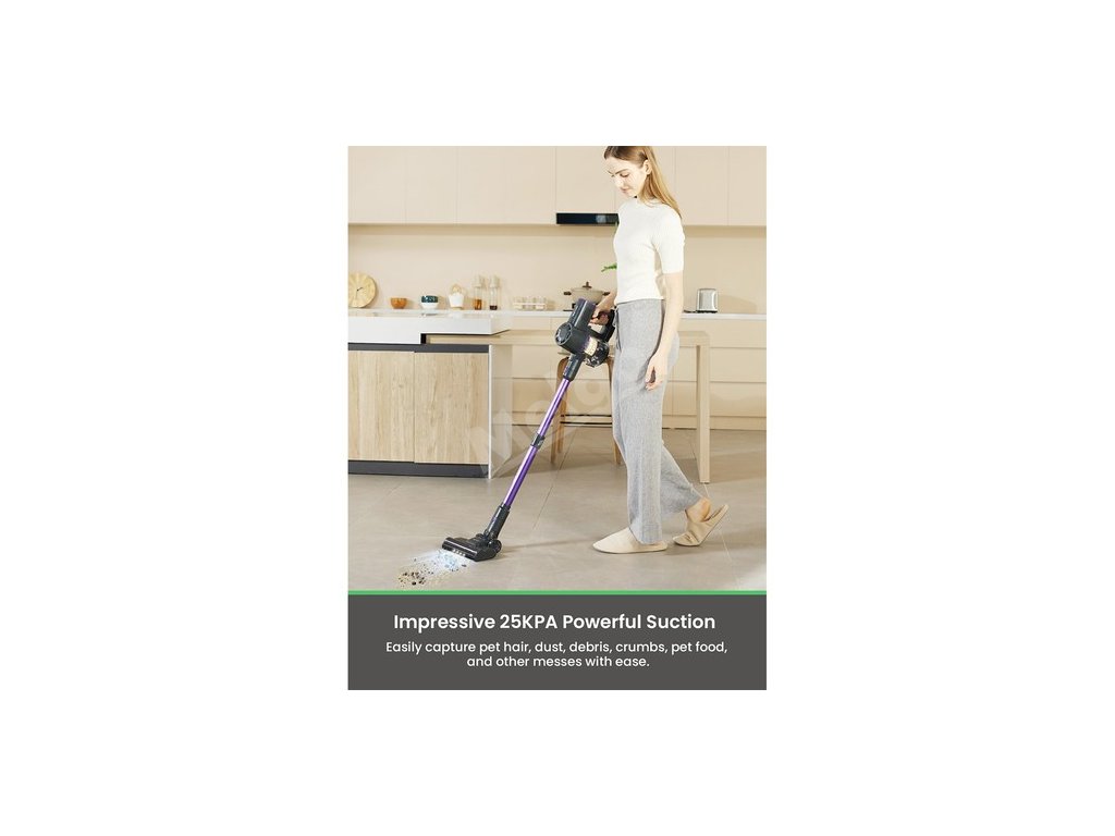 V8 Pro je vybaven výkonným 160W motorem (bezkartáčový motor HyperMotor 200W), který zajišťuje působivě silné sání s tlakem 25 kPa. Lze přepínat mezi dvěma režimy: režimem Max a režimem ECO. Snadno posbírá zvířecí chlupy, prach, špínu, drobky, krmivo a další nepořádek. Vylepšený podlahový kartáč EasyGrab Technology se štětinami a plastovou lištou lépe zachycuje prach z tvrdého dřeva a koberců.