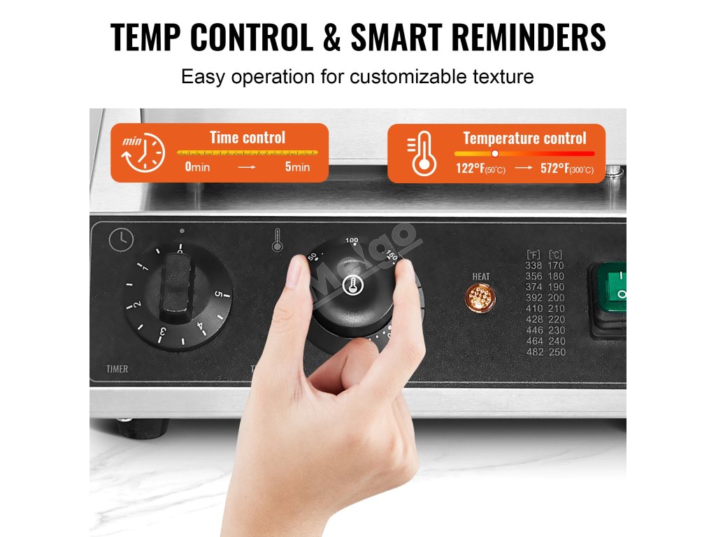 Je vybavený presným časovačom a gombíkom na nastavenie teploty, ktoré sú jasne označené. Keď je vafle hotová, vydá jasný zvukový signál. Vaflovač využíva technológiu uzavretého ohrevu, ktorá zabezpečuje rovnomerný ohrev na oboch stranách, rýchle tvarovanie a jednoduchú výrobu chutných vaflí.