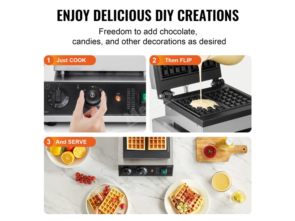 Tento stroj na pečenie vaflí môžete použiť na prípravu lahodných vafľových dezertov pre vašu cukráreň, ktoré uspokoja každého pri raňajkách alebo popoludňajšom čaji. Vďaka svojmu jedinečnému panelovému dizajnu vyniká, takže je najlepšou voľbou pre váš stánok s občerstvením.