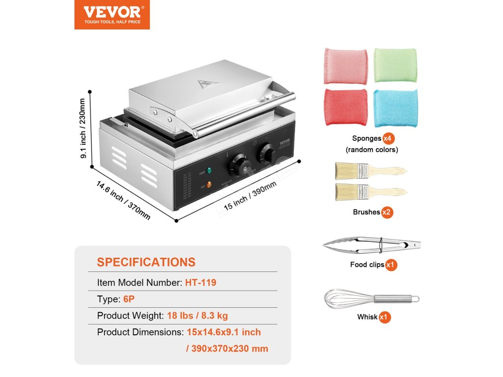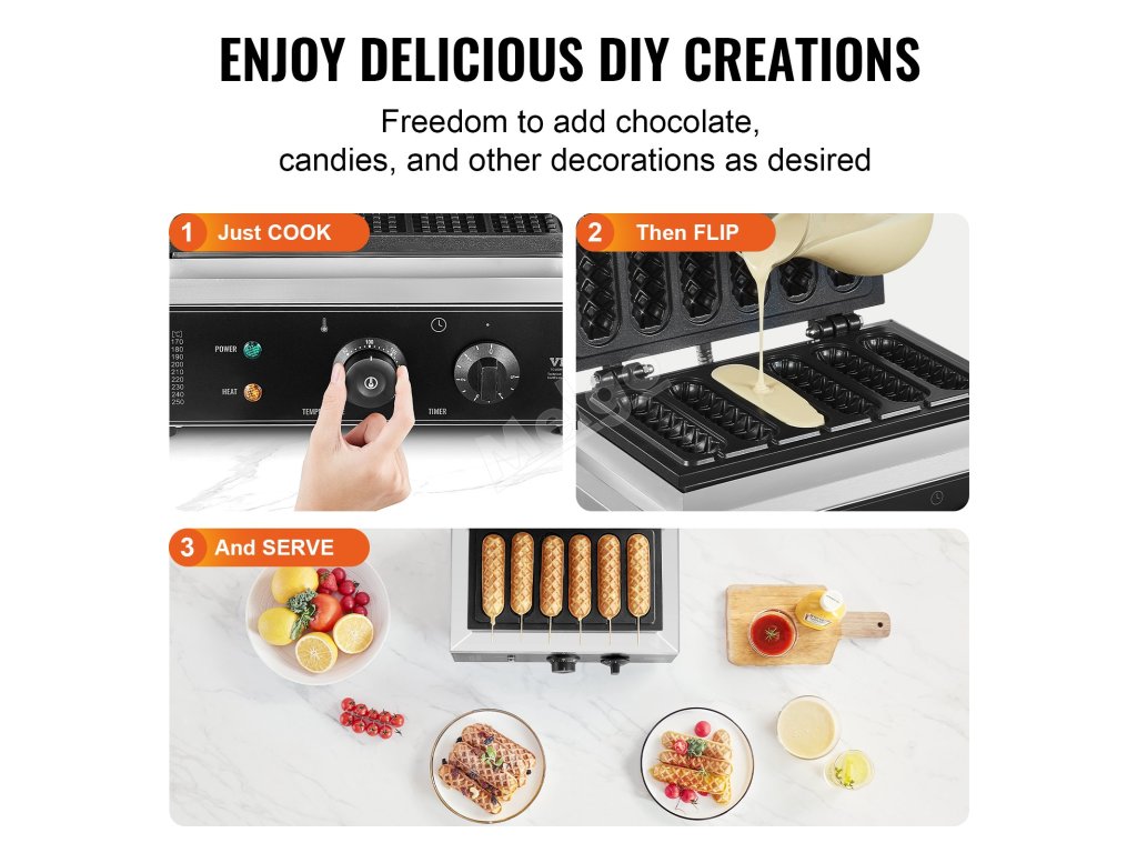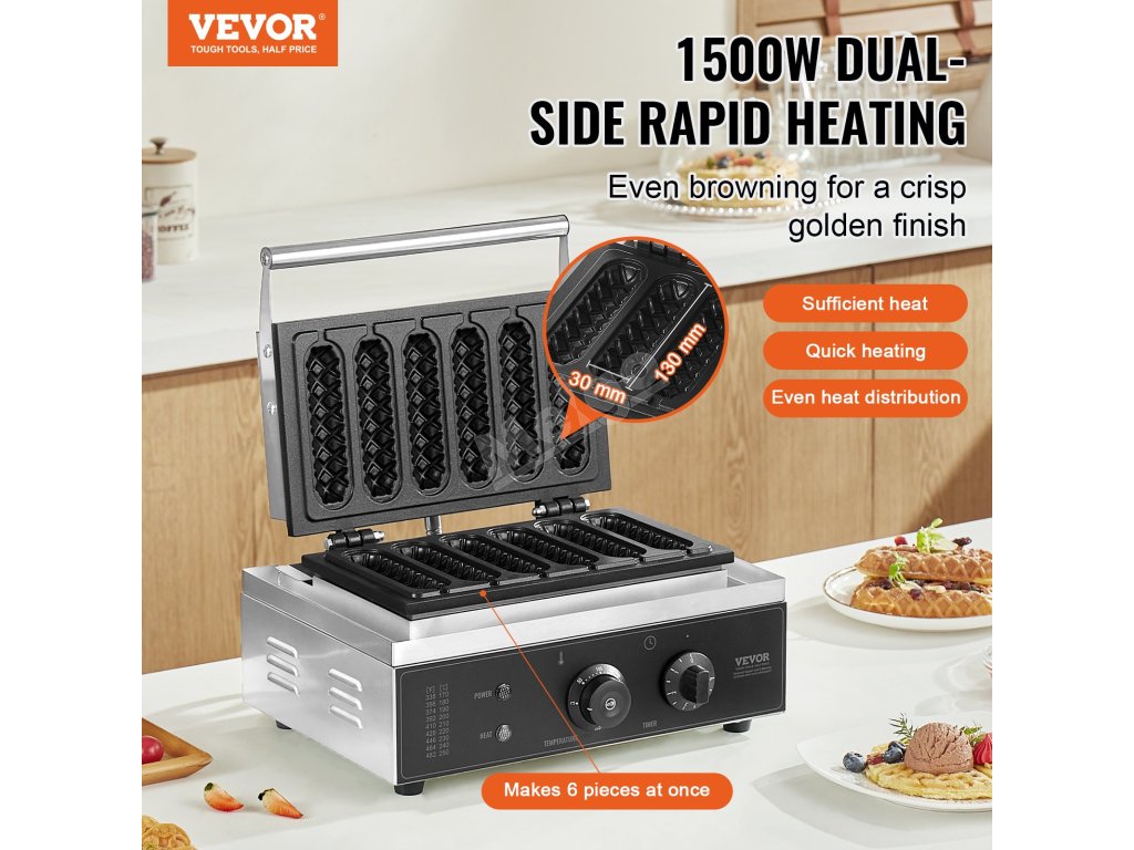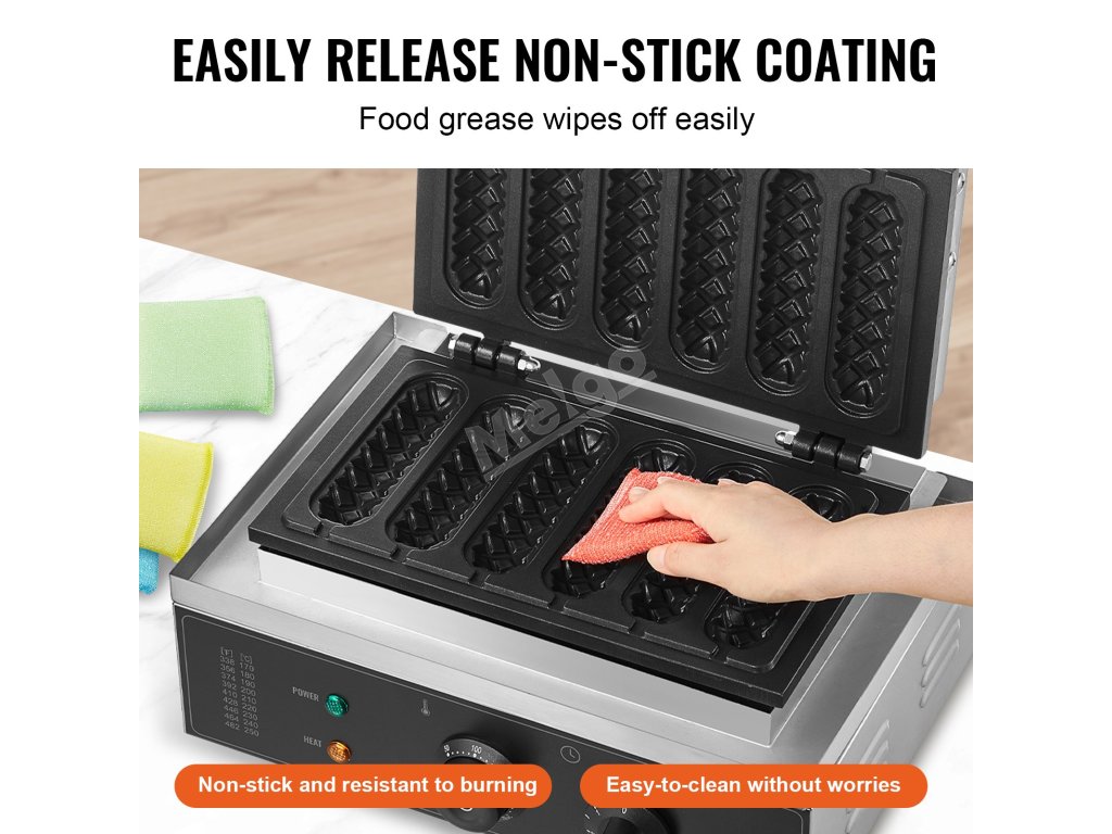 Vaflovač na tyčinky 6PCS 1500W nepřilnavý, regulace teploty a času