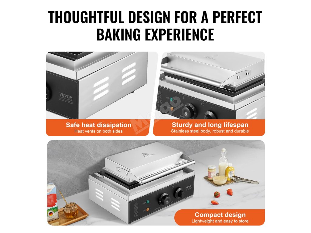 S tímto strojem na pečení vaflí můžete připravit lahodné vaflové dezerty pro svou cukrárnu, které uspokojí každého při snídani nebo odpoledním čaji. Díky svému jedinečnému panelovému designu vyniká a je tou nejlepší volbou pro váš stánek s občerstvením.