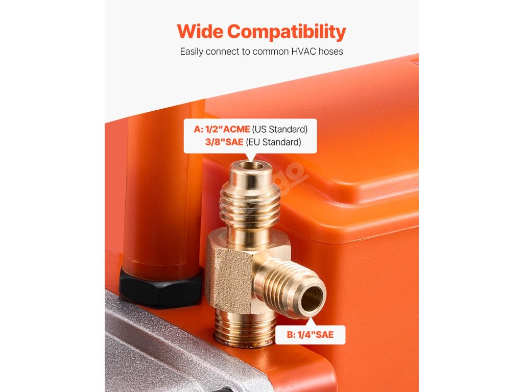 Naše vývěva 5CFM pro HVAC poskytuje rychlé sání a dosahuje konečného vakua 5 Pa. Je vybavena motorem z čisté mědi, 1/4" SAE a 3/8" SAE porty a 0,35 qt lahví na vakuový olej a snadno opravuje automobilové nebo menší systémy HVAC, jako jsou R22, R134a a R410a.