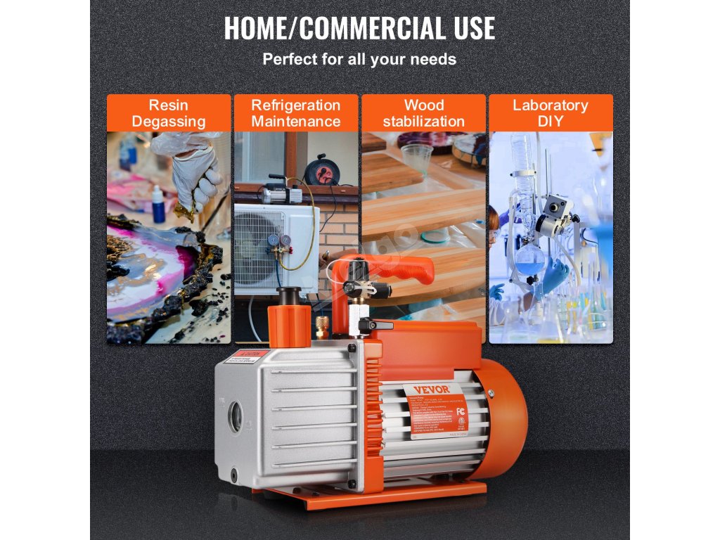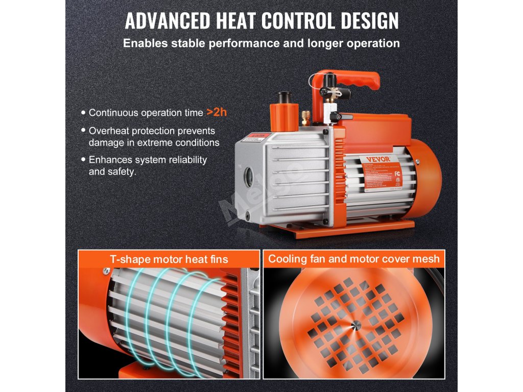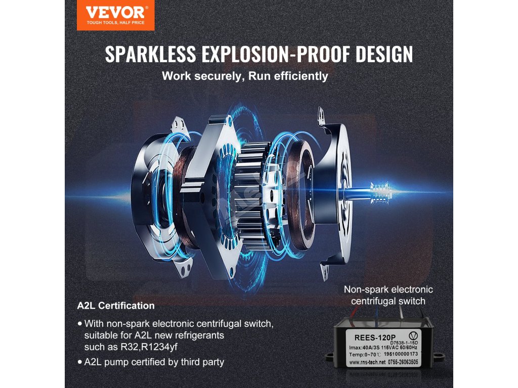Vzduchotechnika VEVOR je testována na nevýbušnost podle normy A2L a poskytuje průtok vzduchu 5 CFM pro špičkový výkon. Ideální pro údržbu chladicích zařízení, opravy vzduchotechniky, odplyňování pryskyřic, stabilizaci dřeva atd. Vyberte si vývěvu VEVOR pro všestranné a spolehlivé výsledky!