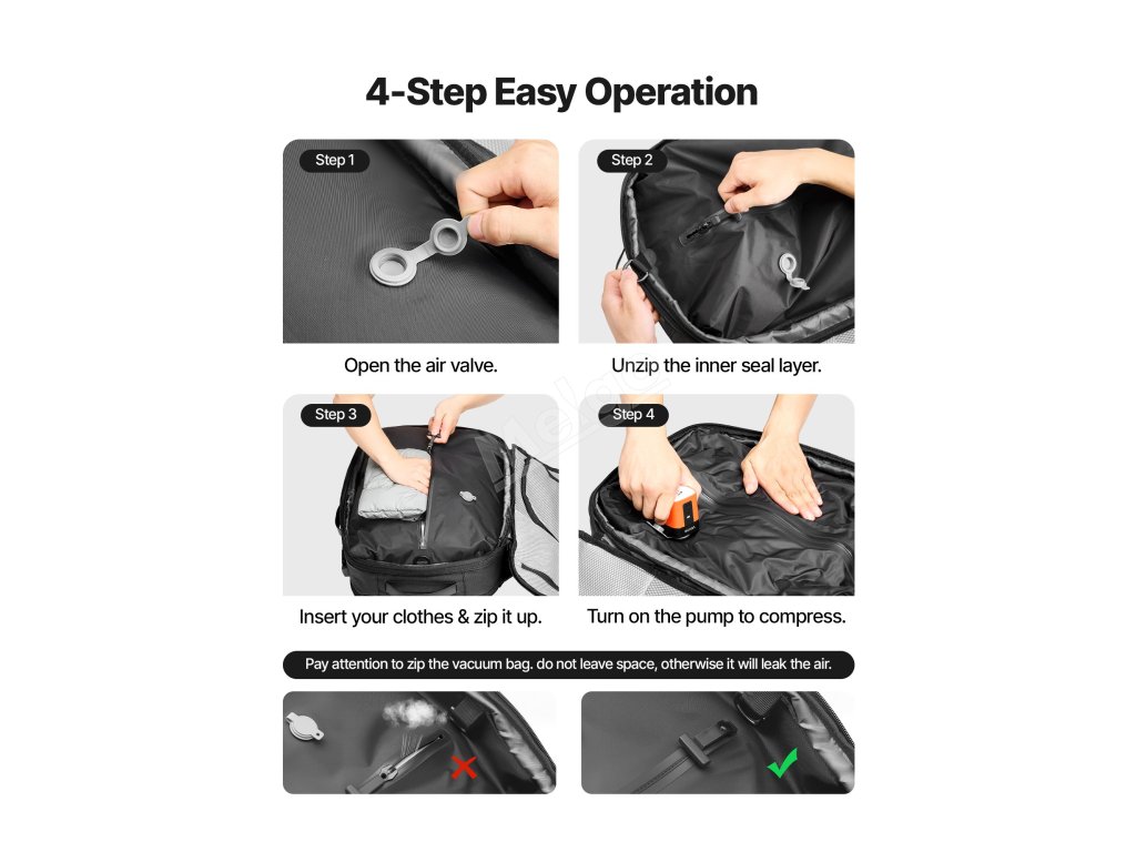 Je vybaven miniaturní vakuovou pumpou pro snadnou kompresi. Tento batoh je vybaven specializovanými přihrádkami a multifunkčními kapsami, jako je suchá a mokrá přihrádka, izolovaná kapsa, kapsa proti krádeži, a pojme vaše oblečení a věci denní potřeby. Zámek schválený úřadem TSA pro větší klid.