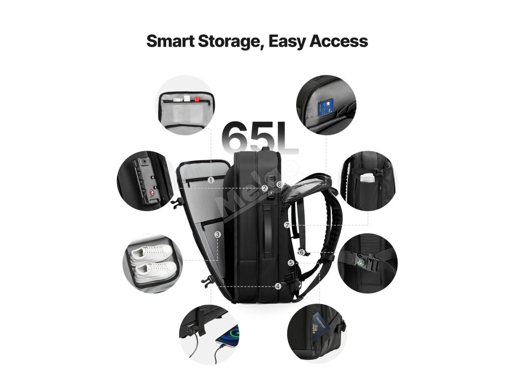 Vakuový cestovní batoh 65L, rozšiřitelný, vodoodpudivý, s TSA zámkem
