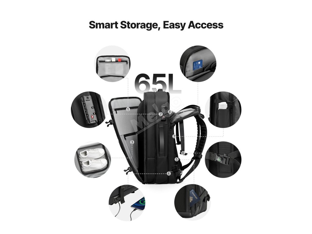 Je vybaven miniaturní vakuovou pumpou pro snadnou kompresi. Tento batoh je vybaven specializovanými přihrádkami a multifunkčními kapsami, jako je suchá a mokrá přihrádka, izolovaná kapsa, kapsa proti krádeži, a pojme vaše oblečení a věci denní potřeby. Zámek schválený úřadem TSA pro větší klid.
