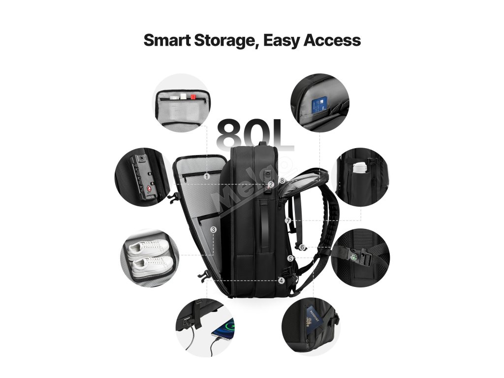 Je vybaven miniaturní vakuovou pumpou pro snadnou kompresi. Tento batoh je vybaven specializovanými přihrádkami a multifunkčními kapsami, jako je suchá a mokrá přihrádka, izolovaná kapsa, kapsa proti krádeži, a pojme vaše oblečení a věci denní potřeby. Zámek schválený úřadem TSA pro větší klid.
