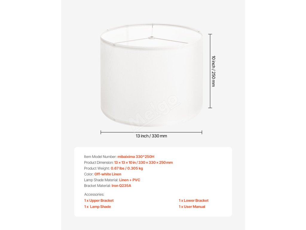 Válcové lampové stínítko 13 in×13 in×10 in, lněné, off-white