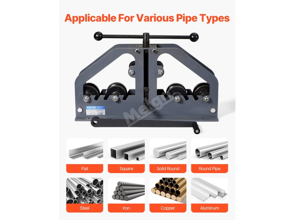 Tato válcová ohýbačka trubek bez problémů pracuje s ocelí, železem, mědí a hliníkem, takže je ideální pro použití při opravách klimatizací, kovovýrobě, stavebnictví, výrobě kovového nábytku a údržbě potrubí.