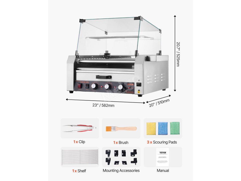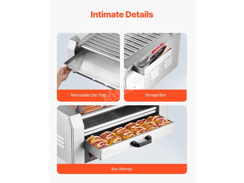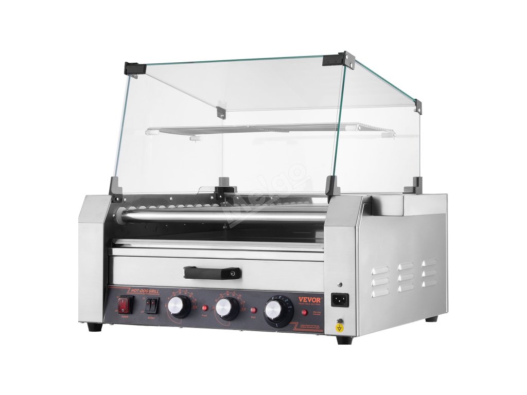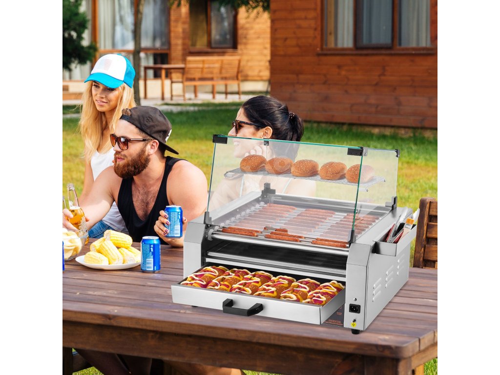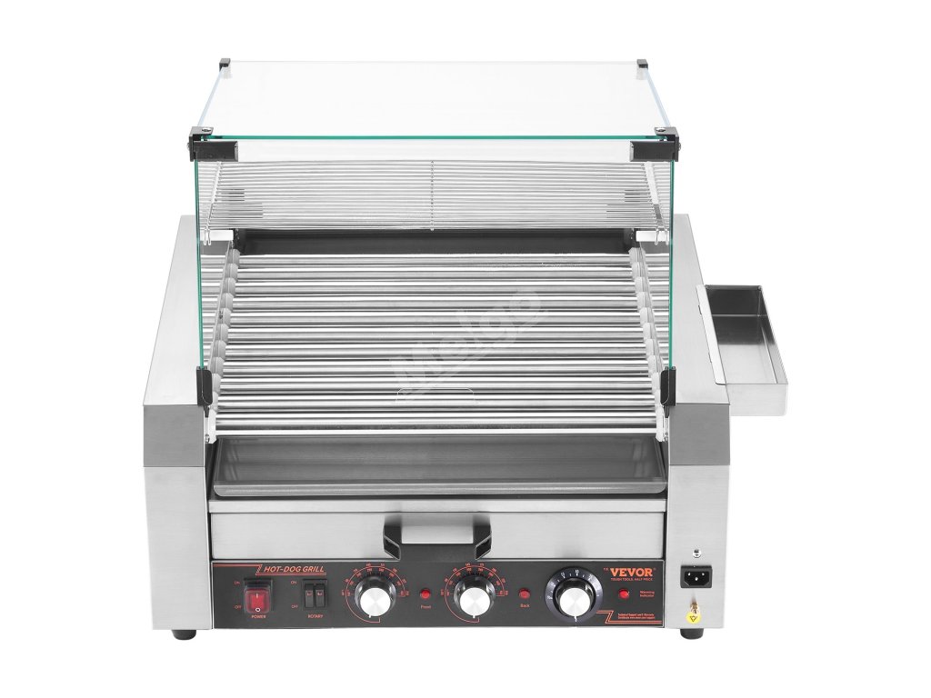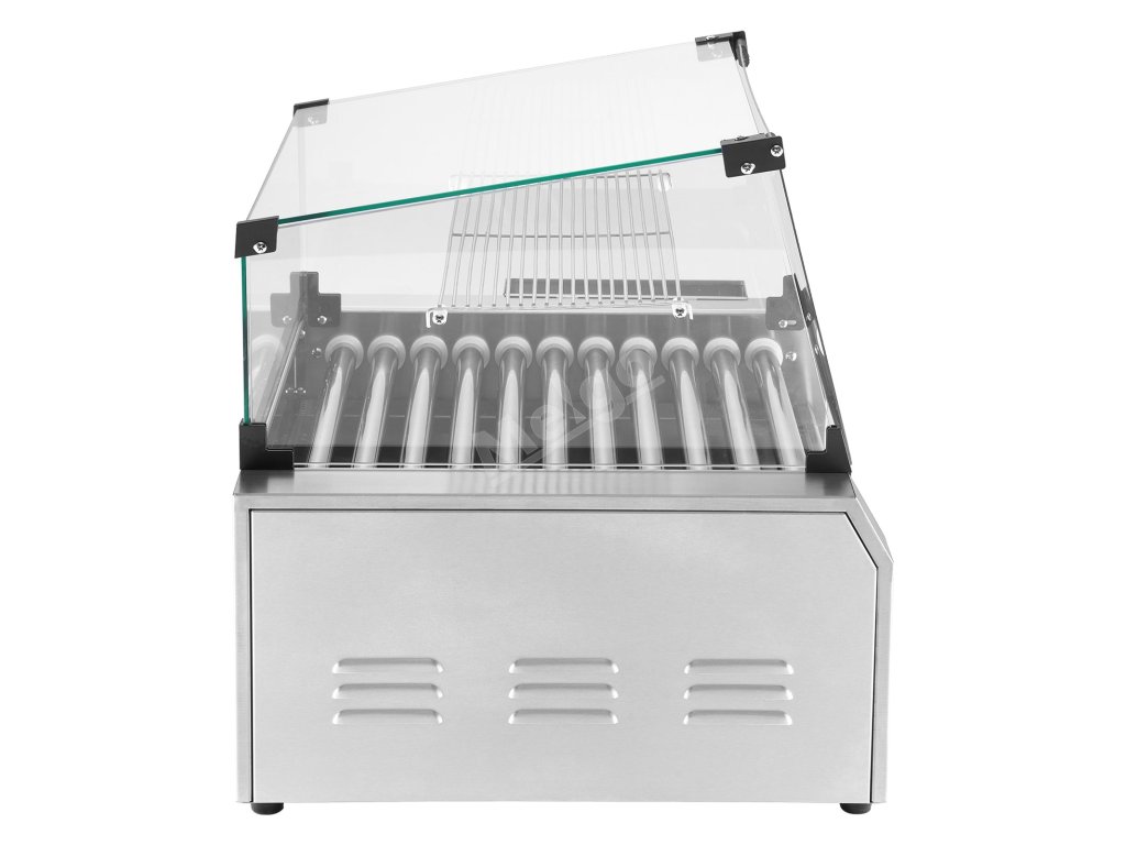 Válečkový gril na hot dogy 30 ks, 11 válečků, 2400W, nerez, s krytem