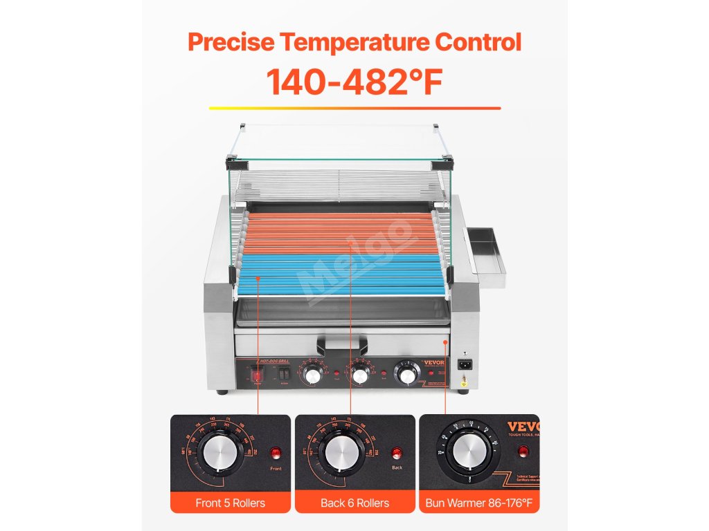 Můžete snadno péct v přední části s regulací teploty a zároveň udržovat teplé housky v zásuvce, abyste získali čerstvé housky na párky v rohlíku.