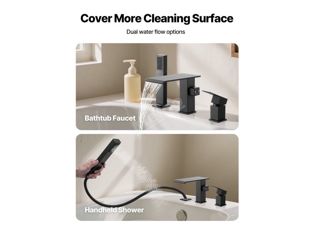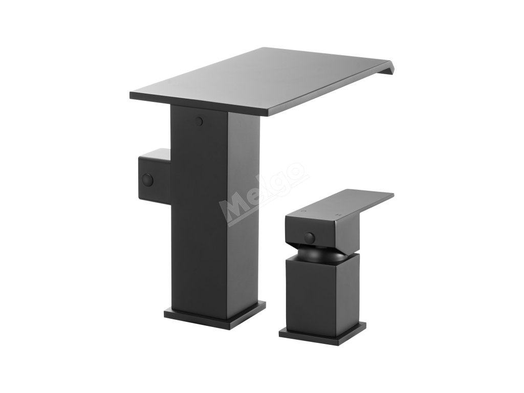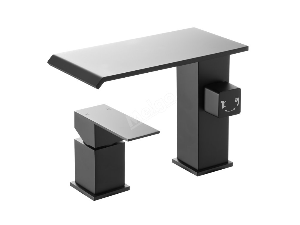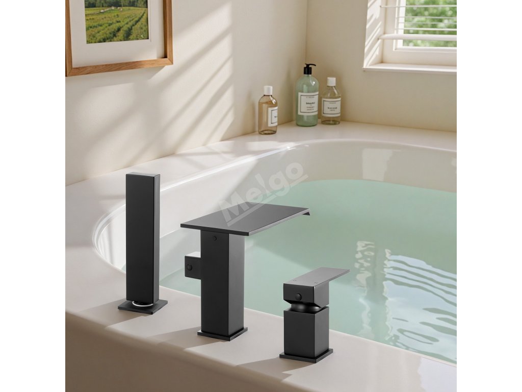 Vanová baterie 3-otvorová vodopád 1 páka s ruční sprchou matná černá