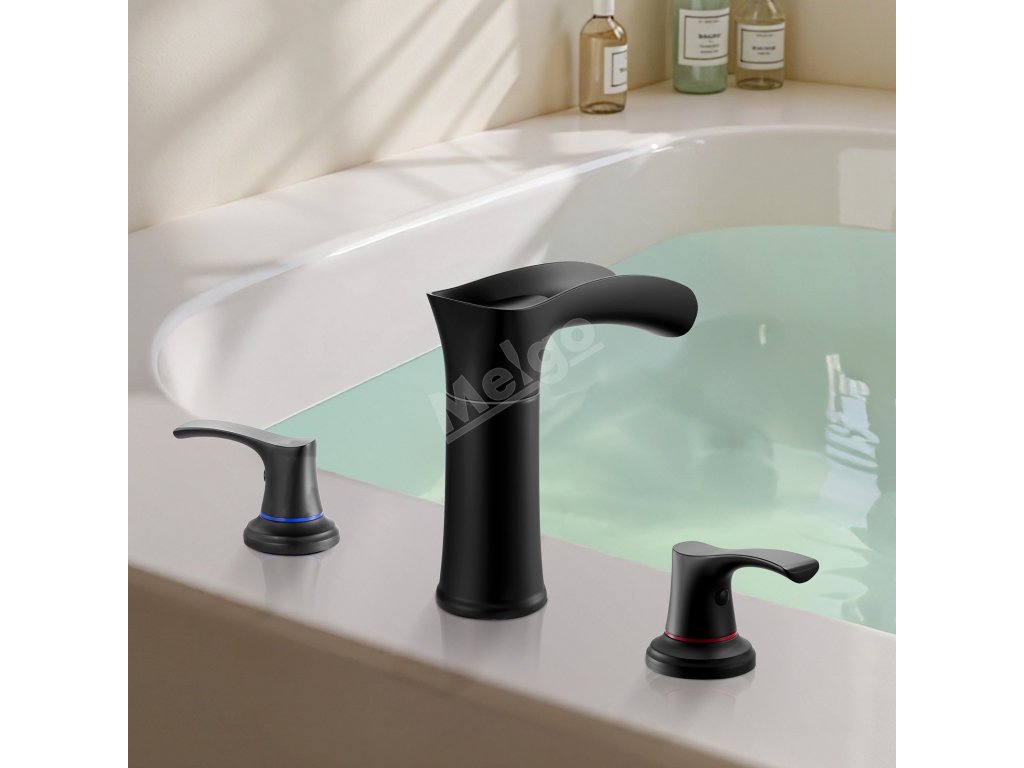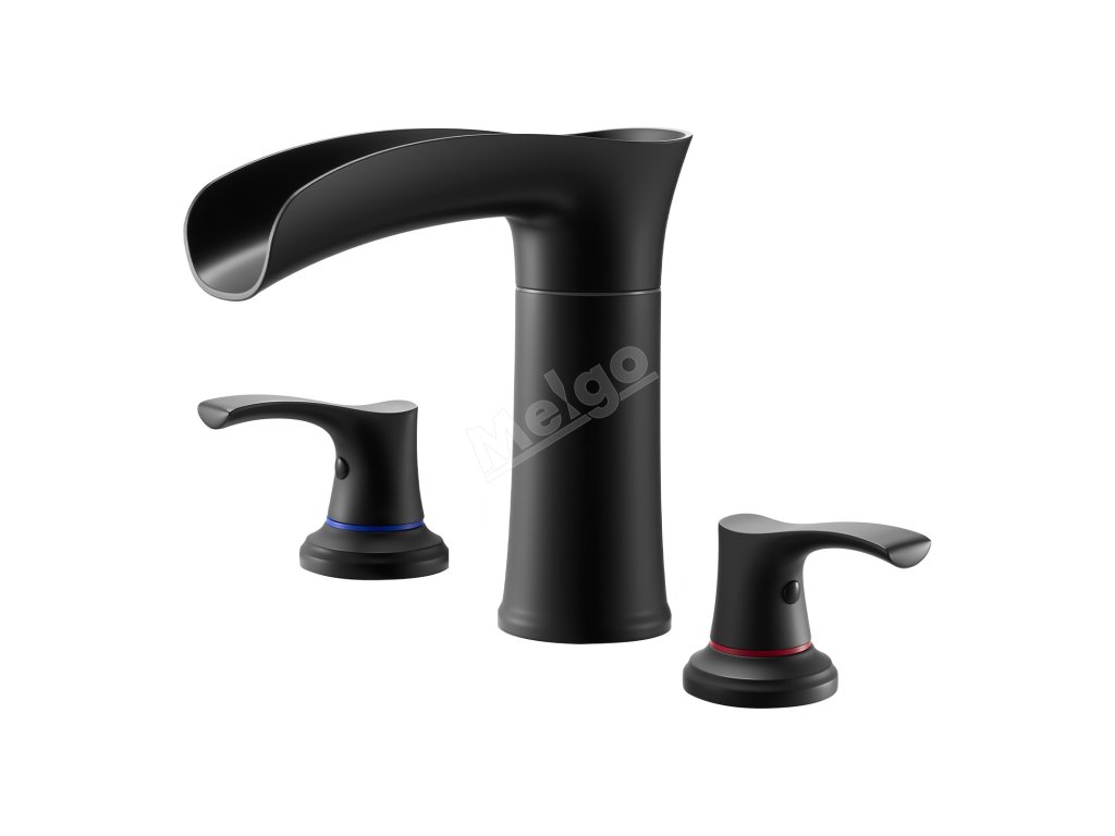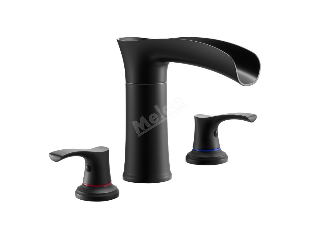 Vanová baterie na okraj, 3-otvorová vodopádová, 2 páky, matná černá