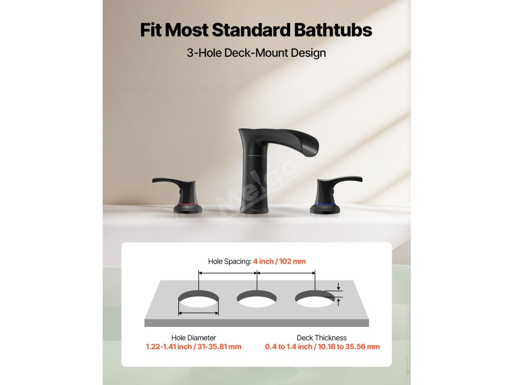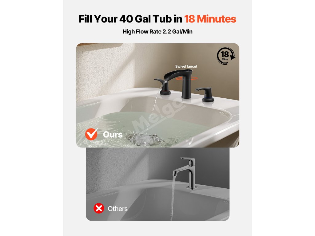Tato vanová baterie VEVOR s vysokým průtokem 2,2 GPM dokáže naplnit 40galonovou vanu za pouhých 17 minut. Díky uspořádání 3 otvorů pro montáž na palubu, konstrukci z nerezové oceli a ovládání dvěma rukojeťmi kombinuje rychlost a pohodlí pro lepší zážitek z koupání.