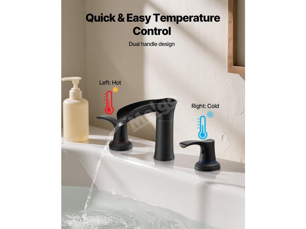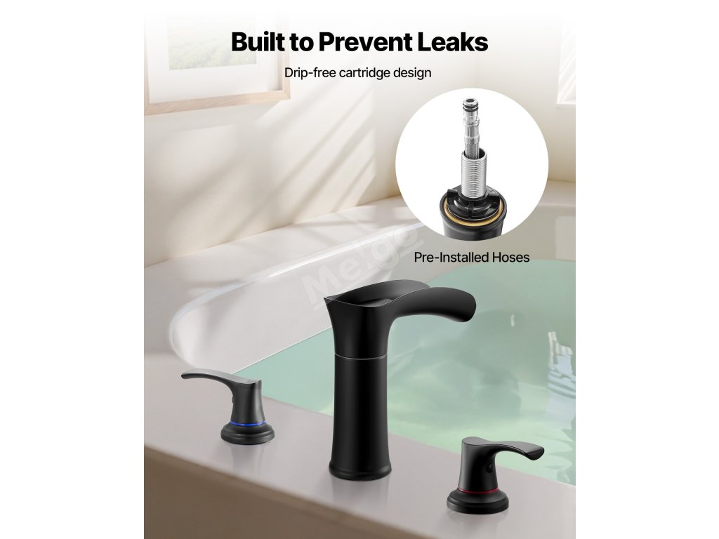 Tato široká vanová baterie poskytuje široký, jemný proud skrze vodopádovou výpusť, který nabízí tišší zážitek z koupání a zároveň pomáhá udržet pulty a podlahy suché. Konstrukce odolná proti stříkající vodě zvyšuje pohodlí a snižuje potřebu úklidu po každém použití.