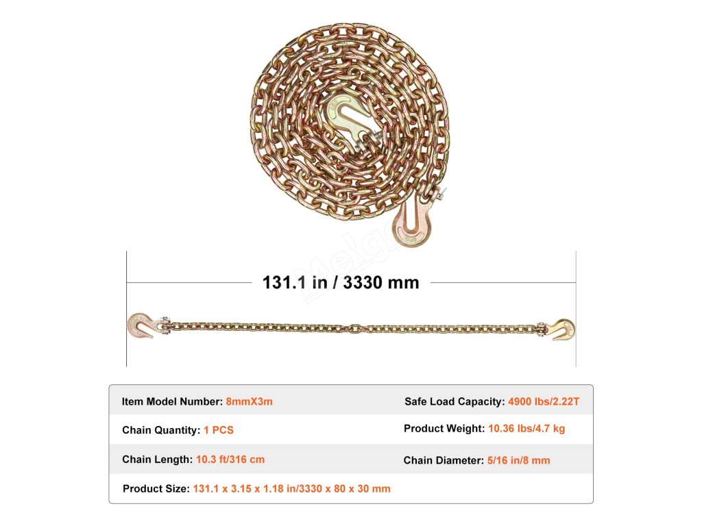 Náš tažný řetěz má bezpečnostní faktor 4:1, což znamená, že zvládne až čtyřnásobek bezpečného limitu. Buďte si jisti při každém jeho použití.