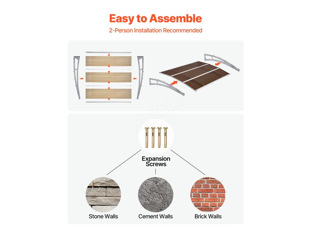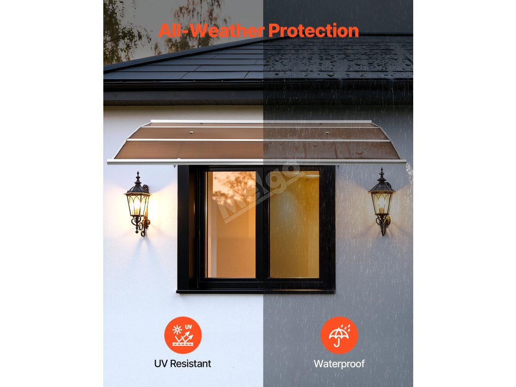 Vchodová polykarbonátová stříška 39×59 in s odtokem a držákem, hnědá
