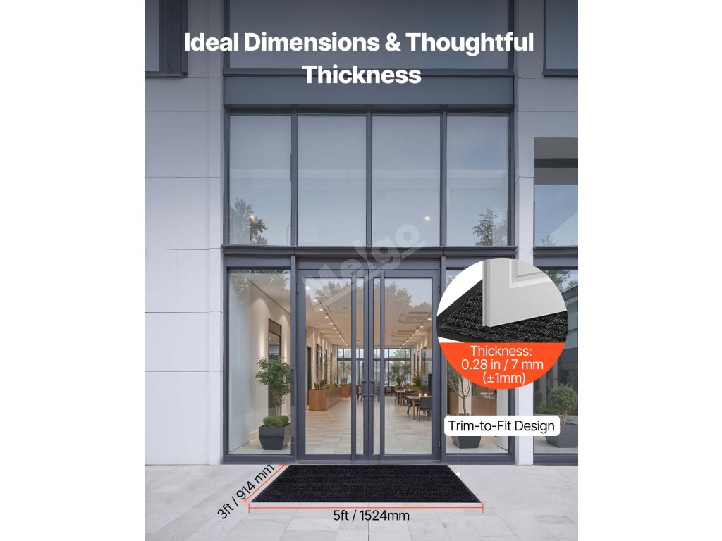 Rohožka před vchodové dveře o rozměrech 5 x 3 stopy / 1524 x 914 mm dokonale pokryje chodby, terasy, verandy a další otevřené prostory a nabízí praktičnost i všestrannost.