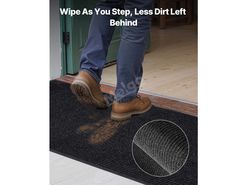 Rohožka s dlouhým pruhovaným vzorem s hlubokými drážkami je vysoce odolná proti opotřebení a poškrábání. Účinně odstraňuje nečistoty a prach z bot a udržuje podlahy čisté a suché.