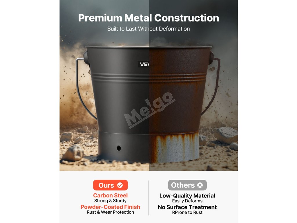 Tento robustní kbelík na popel s víkem a lopatkou s dlouhou životností slouží jako vynikající zásobník. Snadno se do něj vejdou různé materiály, jako je popel, dřevěné uhlí, podpalovací dřevo a pelety, a umožňuje tak víceúčelové použití v jednom kbelíku.
