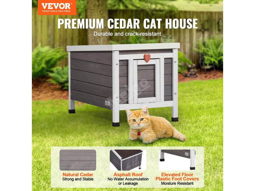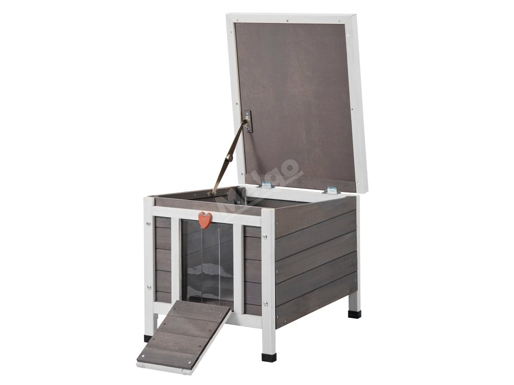 Tento dřevěný domek pro kočky je vhodný do interiéru i exteriéru. Je ideální na trávník, zahradu, balkon a dvůr a poskytne vaší kočce útulný prostor k odpočinku a hraní.