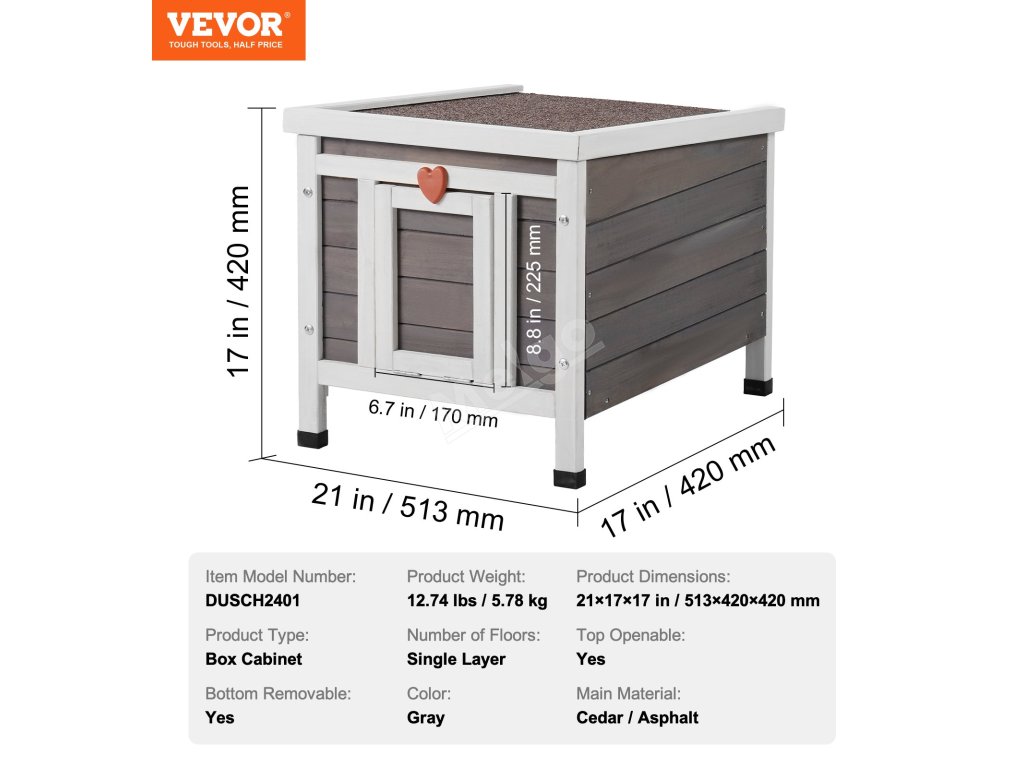 Tento venkovní domek pro kočky je vyroben z kvalitního jedlového dřeva, natřen barvou na vodní bázi a nabízí vícevrstvou ochranu odolnou proti korozi. Čtyři vodotěsné podložky pod nohy zvyšují vodotěsnost. Zajistěte své kočce bezpečí a zdraví!
