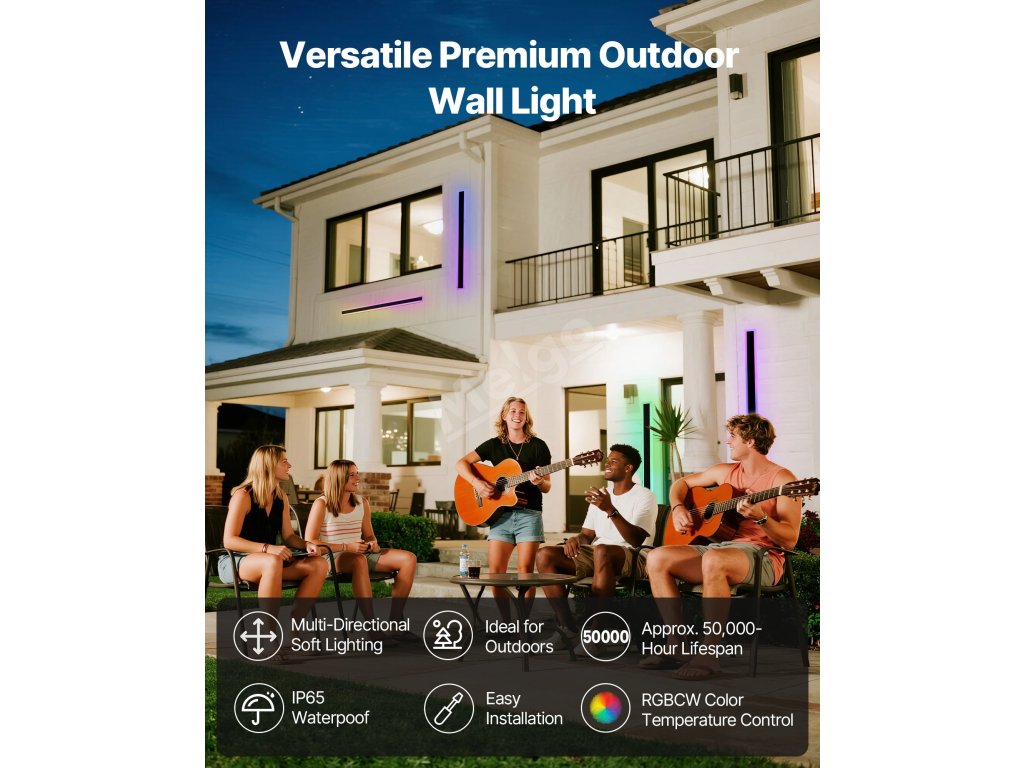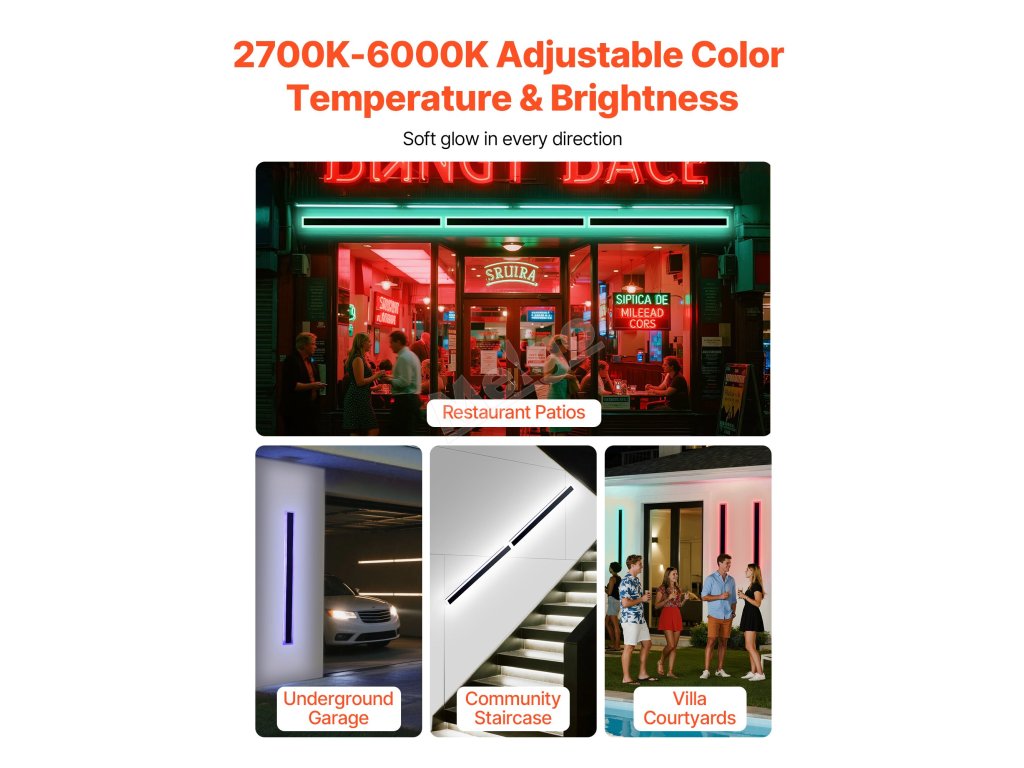 Naše venkovní nástěnné svítidlo má nastavitelnou teplotu barev 2700K - 6000K a teplé až studené světlo s možností širokého nastavení plochy. Osvětluje širokou škálu prostor v garážích, na schodištích apod. Vytváří individuální atmosféru a zároveň splňuje potřeby osvětlení obytných nebo komerčních prostor.