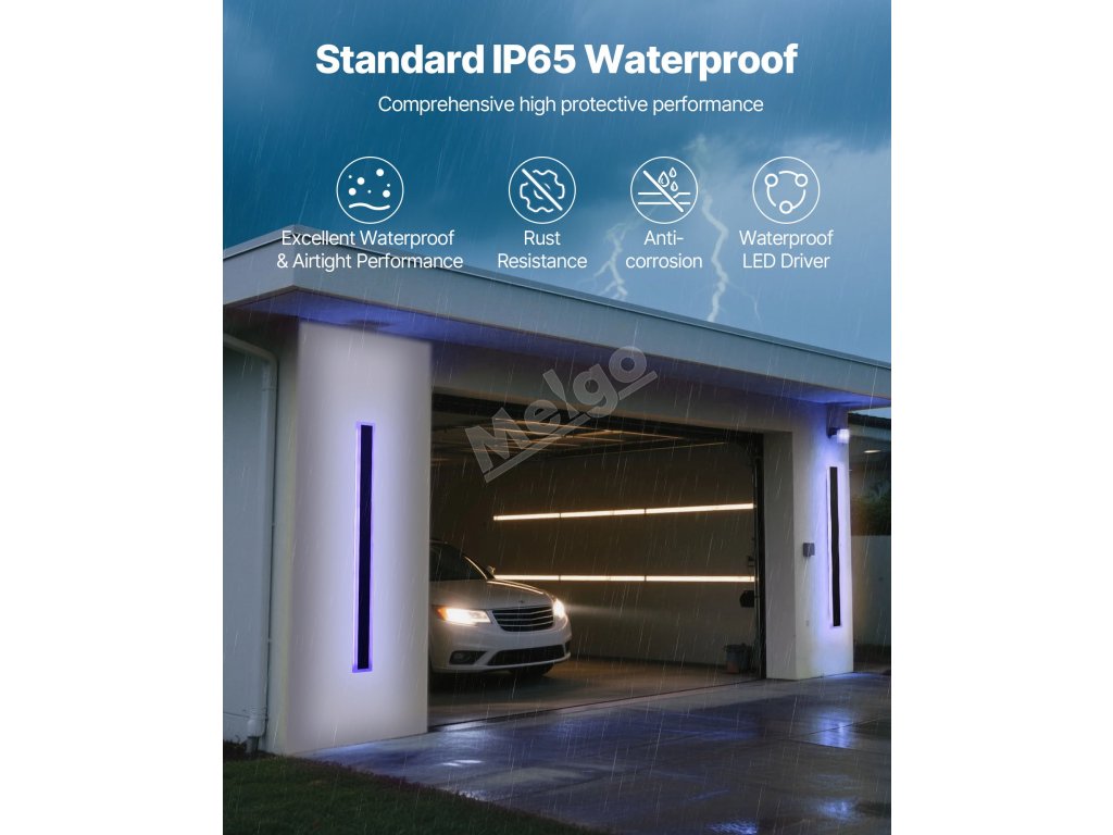Díky vodotěsnosti IP65 má naše venkovní nástěnné svítidlo vynikající vodotěsné a vzduchotěsné vlastnosti, aby odolalo extrémním povětrnostním podmínkám, jako jsou bouřky a silný vítr. Vestavěný vodotěsný ovladač LED je vybaven ochranou proti zkratu a přetížení, což zajišťuje spolehlivý provoz.